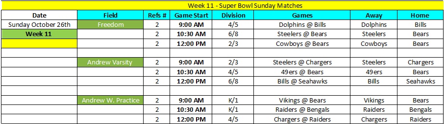 - NFL Sponsored Teams, Weekly Schedules, Practices and a Super Bowl Sunday Championship.